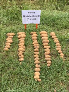 Three other advanced lines, W8893-1R, W9433-1rus, and W9576-11Y, are being tested on a larger scale (0.5 to 1 acre) by commercial growers this year. We look forward to learning more from the growers about the performance of the breeding lines at the fall SpudPro meeting.